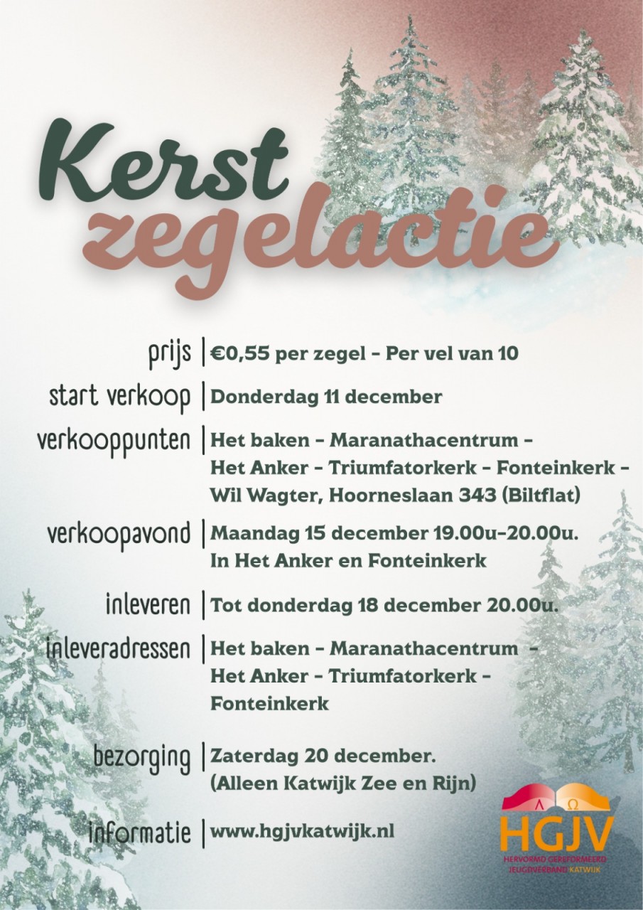 De kerstkaarten worden op D.V. zaterdag 20 december bezorgd in Katwijk aan Zee en Katwijk aan den Rijn.